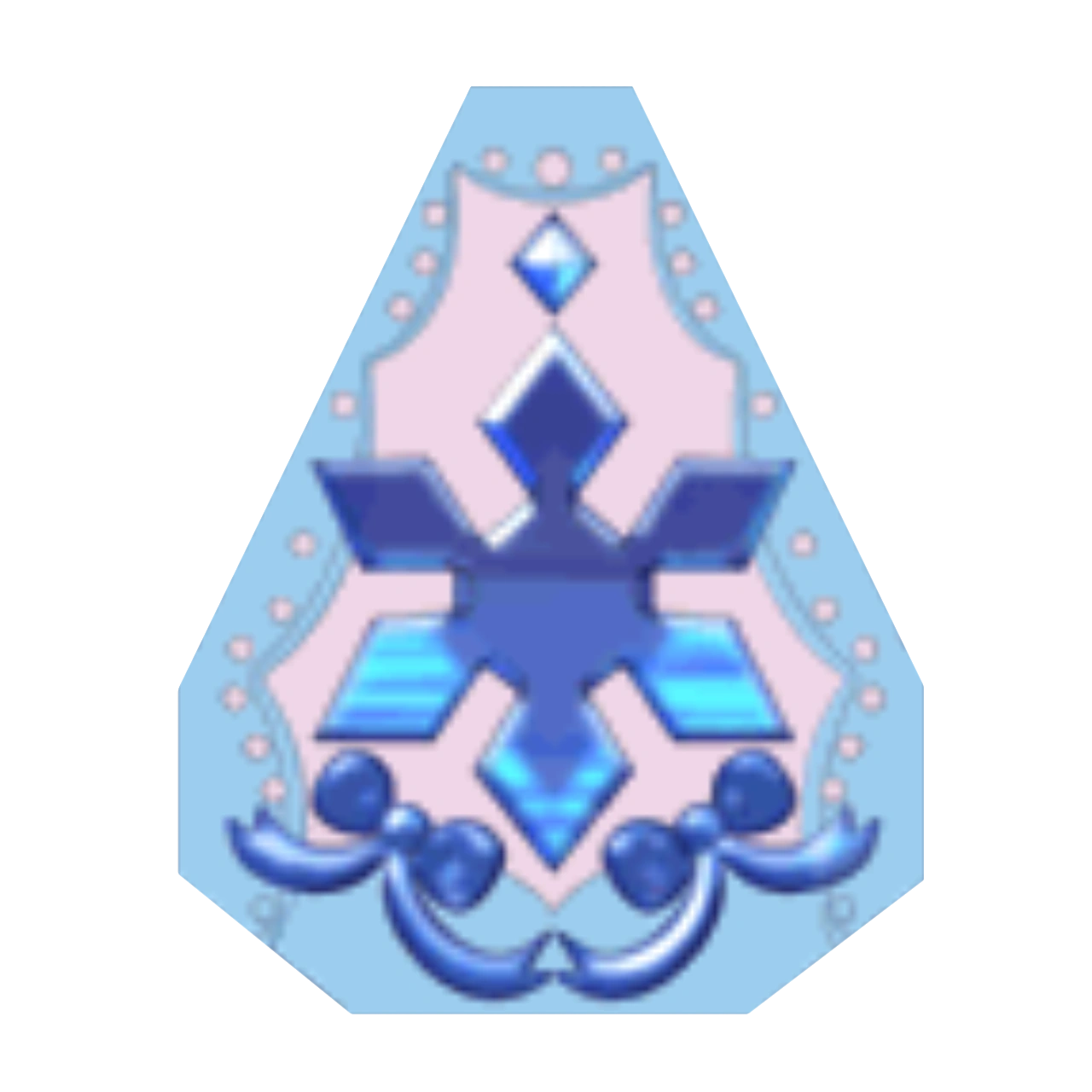 | Io's Jewel Charm is cone-shaped with a dark blue decor and a snowflake shape in the center. It's base color is light blue and light pink. |