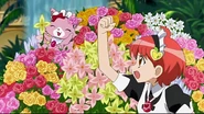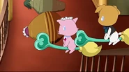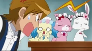 Then the herb thieves hide inside the vases to avoid being caught stealing them but end up getting stuck inside them. Trying to get out they roll dramatically into the party while Aoi is trying to cook some octopus dumplings for Hattori. It turns out, in the past when Aoi was just a child, Hattori saved her by blocking some hot octopus dumplings she made with his back when she tripped, creating the 7 wounds. He senses Aoi is in danger and runs over to the jars and pushes 2 of them away from Aoi. However, he doesn't seem to have the strength to save her from the 3rd vase. Then a Jewelpet charm appears and they open it up to find King the Jewelpet of Health. Hattori asks King for his magic to help him protect Aoi from the last vase but King warns him it will be painful. He agrees and the octopus dumplings infused with magic land on his wounds on his back and give him super strength to tackle the last vase. This also removes Diana's curse at the same time. The party went on as planned and all is well.