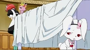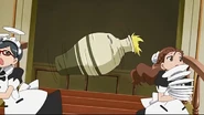 Ruby runs around and Rinko chases her, causing a huge mess where all the food is ruined. Rinko takes the blame while Ruby slinks away. Meanwhile, The herb thieves figure out that stealing some of the rich stuff around the mansion would be better than stealing the Jewel charm so they try to steal some big vases. Aoi and friends find a way of getting more food for the party and things seem to be going very well. Hattori feels like he isn't needed now that Aoi has such good friends to help her in times like these. Ruby apologizes to Rinko for causing such a mess and is forgiven.