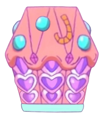 | In Twinkle☆, the base is pink and the hearts are white, with the top fully colored in red. The sweets blend in with the top's full coloring, giving the illusion that it is partially submerged in the liquid. |